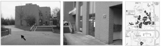 Vom Uni-Gelände aus halten Sie sich nach dem Übergang links (siehe Pfeil) und folgen dem Weg bis zur Hausnummer 23 (siehe Lageplan).