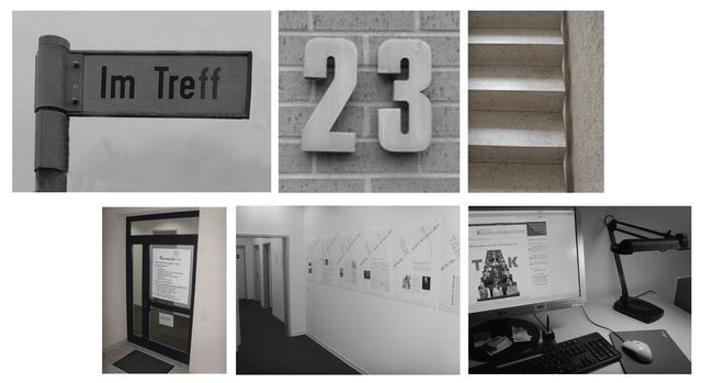 Sie finden uns Im Treff 23 im 1. Stock. Die Büroräume der TAK-MitarbeiterInnen befinden sich in unmittelbarer Nähe zum Besucher-Parkplatz Ost auf dem Campus I (siehe Lageplan).